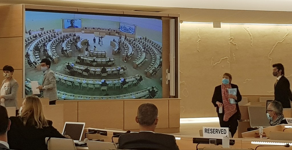 La conférence de ce mardi 1er septembre avait lieu dans la salle XX du Palais des Nations, dite « salle des droits de l’homme et de l’alliance des civilisations », tout un symbole. Devant une audience clairsemée et masquée, deux femmes d’importance, Simonetta Sommaruga, présidente de la Confédération suisse, et Michelle Bachelet, ancienne Présidente du Chili et Haut-Commissaire des Nations Unies aux droits de l’homme, se sont livrées à un constat alarmant et à une défense acharnée de la liberté d’expression et du métier de journaliste. La Présidente suisse a rappelé qu’«une démocratie se mesure à la façon dont elle traite ses journalistes», constatant que les menaces contre les journalistes dans le monde avaient atteint une «gravité alarmante» et que le nombre de pays sûrs se réduisait telle une peau de chagrin pour les professionnels des médias. Indiquant que 90% des homicides contre les journalistes restaient encore impunis, Mme Sommaruga a souligné la nécessité d’« institutions judiciaires indépendantes » et de « législations dissuasives » pour améliorer cette situation dramatique.