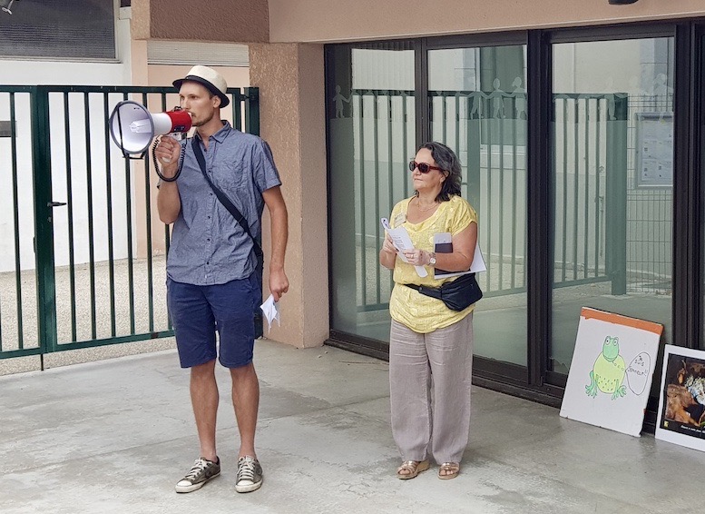 Parmi les personnes prenant la parole devant la mairie, malgré les klaxons et le bruit des moteurs de tracteur, un témoignage emblématique, celui de Mickaël Tissot, en charge de la mise en œuvre du contrat ENS du plateau de Loëx. Celui-ci, employé par les communes de Bonne et d’Arthaz-Pont-Notre-Dame pour faire respecter le cadre légal de l’espace naturel sensible, a donné son avis négatif sur ces projets de travaux de remblaiement, avis qui n’a donc pas été suivi par le conseil municipal d’Arthaz. Et il se retrouve ainsi à manifester contre son propre employeur pour faire respecter la réglementation dans le cadre de sa mission. Lorsqu’on demande à M. Tissot s’il craint la réaction des élu.e.s d’Arthaz, celui-ci rétorque, droit dans ses bottes : « il faudrait qu’ils aient des arguments pour démontrer que ce que je dis est faux ». Dont acte.