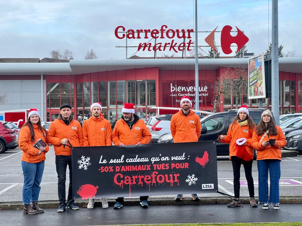 L214 rappelle dans un communiqué que pour le seul mois de décembre, ce sont dix millions d’animaux qui sont abattus uniquement pour Carrefour, qui se vante pourtant d’« agir pour la biodiversité »[5]. Nous savions déjà que la marque commercialisait des produits pourtant illégaux, issus des territoires palestiniens occupés[6]. Nous savons désormais qu’elle participe à très grande échelle au massacre animal.